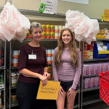 Elizabeth’s volunteer duties are as hands-on as they are strategic. Every weekend, she dedicates her time to A Hopeful Harvest, where a “shopping-based” process allows families to choose their own food. In monthly board meetings, she helps shape the pantry’s future, discussing improvements, food items and safety protocols. Beyond her work with the board, she is leading a new project that will connect her school’s students with the pantry, allowing them to use their Spanish language skills to serve families.
