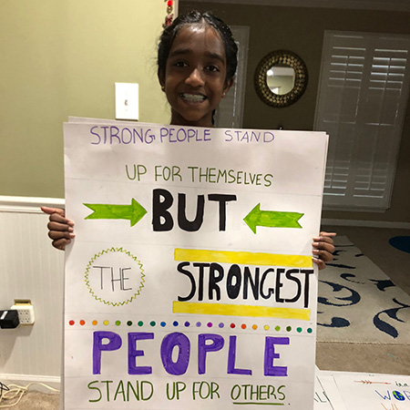 One of many signs Shruthi Senthil made in middle school to promote school values of kindness and consideration.