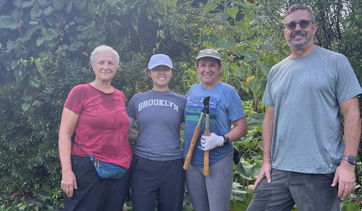 I thought, what’s something I can get involved with to understand it better? We don’t really think about the farmers or where this food comes from. I felt like in order to connect these two realms — school and in-person contact — it would be through this work: harvesting, planting, tending, growing actual food… and not just learning about it.
