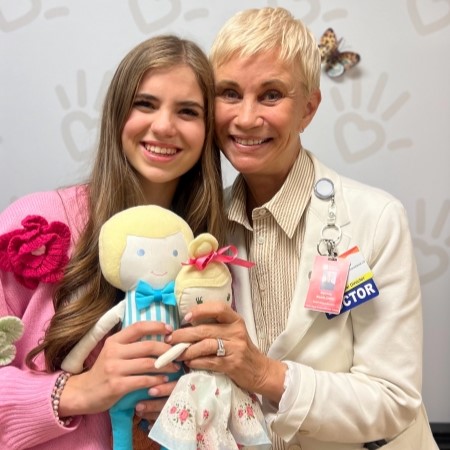 Charlotte Gould and Phoenix Children’s Hospital Cleft & Craniofacial Care Center director, Dr. Patricia Beals, hold dolls sewn by Charlotte./Courtesy Charlotte Gould