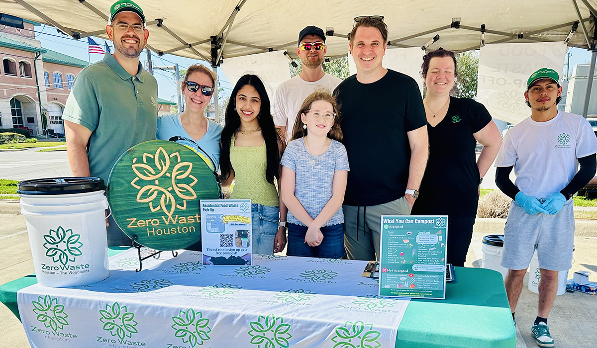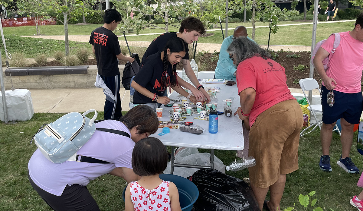 Bella Kalra (light green shirt), a climate activist and member of the Bellaire Youth Advisory Board, helps her city’s Environmental Sustainability Board advertise their composting program.