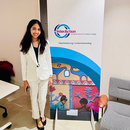 Bella speaks about the effects of eco-optimism and anxiety at the InterAction Forum in Washington, D.C.